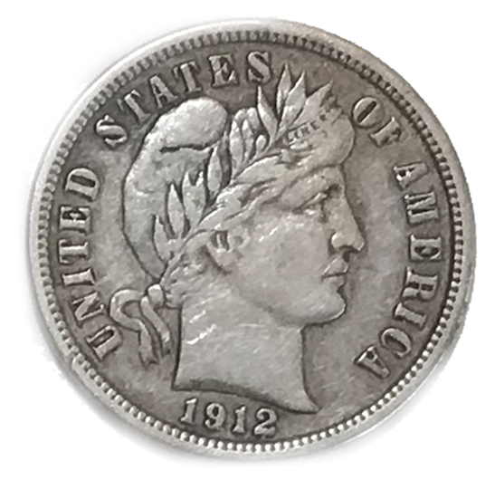 1912 Barber Dime XF EF Extremely Fine 90% Silver 10c Coin