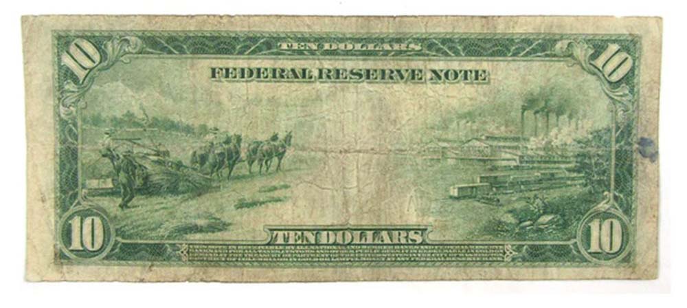 1914 $10 Small Size Federal Reserve Note VG Details from The Bureau of Engraving and Printing