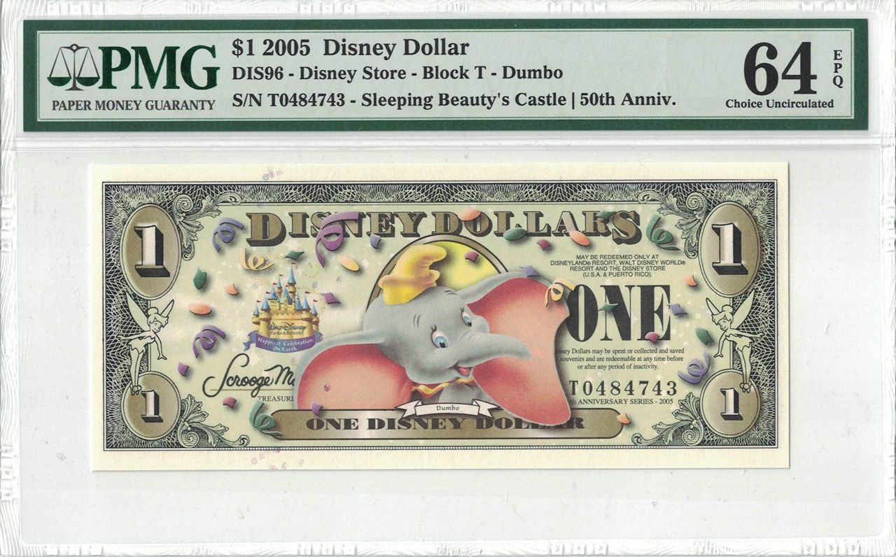 This 2005 T $1 Disney Dollar features Dumbo.