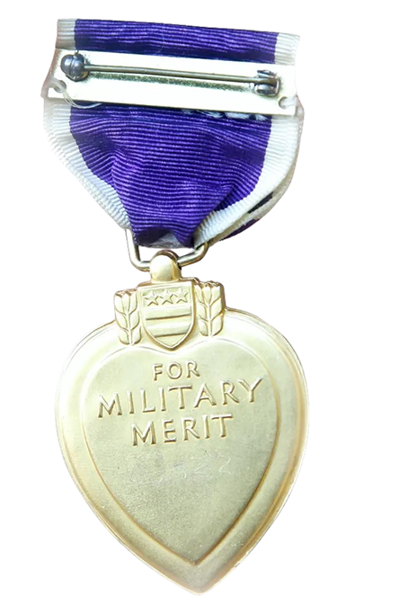 This is an original Second World War issued Purple Heart Medal. This is a mid to late war example without a rim serial number. It is unengraved. It has the period correct "sewn" brooch also referred to as a "slot" brooch. This award would be period correct for anyone awarded a medal during the Second World War or Korea.