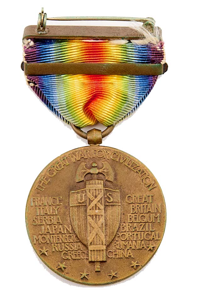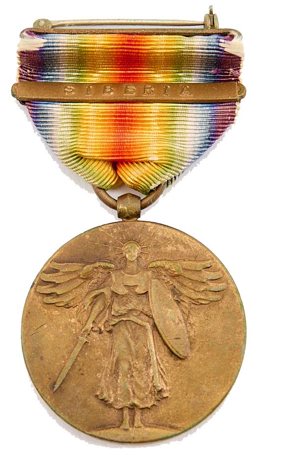 A rare and historically significant British WWI Victory Medal, complete with the SIBERIA clasp, awarded to British personnel who served in the Allied intervention in Russia (1918–1920) following the Russian Revolution. Struck in bronze, the medal features the classical winged figure of Victory on the obverse, while the reverse bears the inscription “THE GREAT WAR FOR CIVILIZATION 1914-1919.” The WWI Victory Medal is suspended from its original rainbow-colored silk ribbon, symbolizing the unity of the Allied nations.