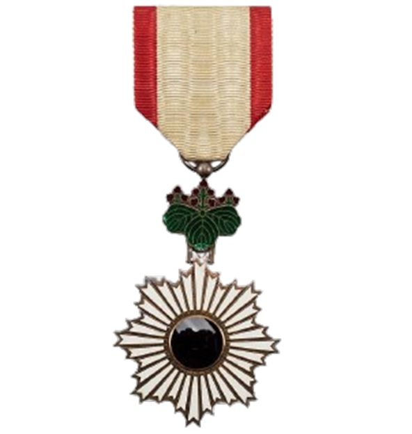 The Order of the Rising Sun is a Japanese order, established in 1875 by Emperor Meiji of Japan. The Order was the first national decoration awarded by the Japanese government, created on April 10, 1875, by decree of the Council of State. The badge features rays of sunlight from the rising sun. The design of the Rising Sun symbolizes energy as powerful as the rising sun in parallel with the “rising sun” concept of Japan (“Land of the Rising Sun”). The order is awarded to those who have made distinguished achievements in the following fields: international relations, promotion of Japanese culture, advancements in their field, development in welfare or preservation of the environment. Prior to the end of the Second World War, it was also awarded for exemplary military service. Beginning in 2003, the two lowest rankings (7th and 8th classes) for the Order of the Rising Sun were abolished, with the highest degree becoming a separate order known as the Order of the Paulownia Flowers, with the single rank of Grand Cordon. While it is the third highest order bestowed by the Japanese government, it is however generally the highest ordinarily conferred order. The highest Japanese order, the Order of the Chrysanthemum, is reserved for heads of state or royalty, while the second highest order, the Order of the Paulownia Flowers, is mostly reserved for politicians.