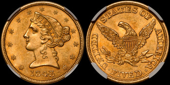 1843 $5.00 NGC MS62 CAC